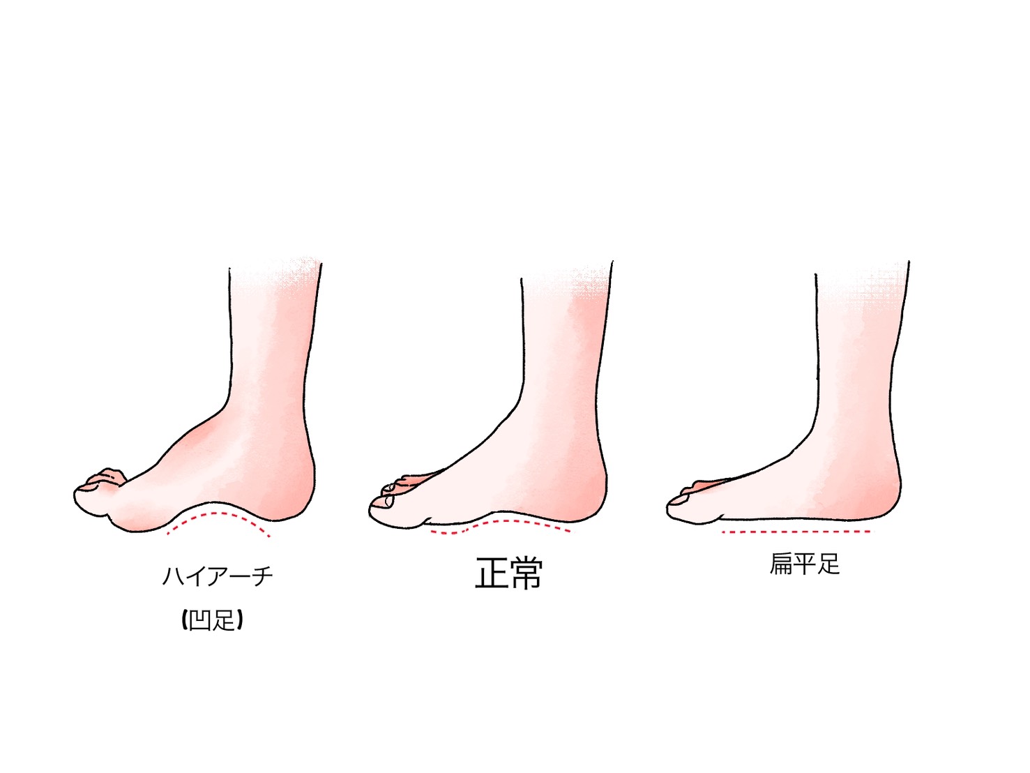 ・扁平足やハイアーチなど足の形に特徴がある